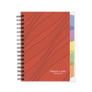 Oavsett om du använder denna spiralbundna anteckningsbok för att sortera och kategorisera information eller helt enkelt som en dagbok att skriva i passar den för alla ändamål. Den spiralbundna anteckningsboken har fem flerfärgade, genomskinliga flikar som hjälper dig att skapa en katalog av information för snabb och enkel åtkomst. Den innehåller spiralbundna sidor, vilket gör dem lätta att vända eller riva ut. Den här anteckningsboken har även linjerade samt rutade sidor, så att du kan använda den för olika ändamål. Dessutom håller dess omslag av polypropylen de inre sidorna säkra och gör anteckningsboken hållbar. – Med 5 flerfärgade, genomskinliga flikar av polypropylen – Med linjerade och rutade spiralbundna sidor – Omslagets material: Polypropylen – Format: A5 – Vikt: 70 g – Antal ark: 150 (90 linjerade, 60 rutade)
