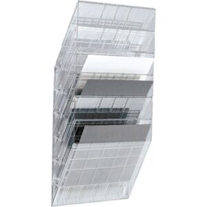 Skapa ett utrymme för visning av tidskrifter eller ett snabbt arkiveringssystem för A4-dokument med denna väggdisplay från Durable Flexiboxx. Med sex fack ger den här horisontella displayen snabb ordning på kontor och i väntrum, samtidigt som designen är enkel att installera. Installera den här Flexiboxx-väggdisplayen på några minuter i alla rum som har användning för extra arkivering eller tidskriftsförvaring. – Organisera pärmar, tidskrifter eller dokument – 6 separata fack för organisation – Monteras horisontellt i liggande format – Färg: Transparent – Väggdisplay med måtten 390 x 295 x 165 mm