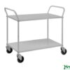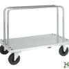 En optimerad vagn både gällande ergonomi och estetik. Vagn från serie 300 utrustad med ergonomiska handtag, bromsade hjul och lackad i en stilren grå färg. – Belastning: 500kg – Storlek: 1110 x 700 x 965mm (LxBxH) – Färg: Mörkgrå/svart – Vagnens vikt: 40kg – Bromsade hjul: Ja – Hjultyp: 2 fasta, 2 länkhjul med broms