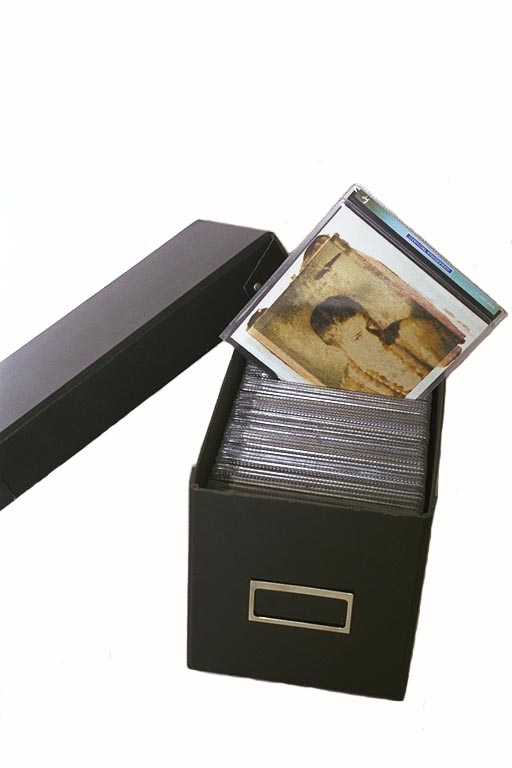 CD-box i svart returpapp med lock, smart CD förvaring för din musik, film, foton eller data på CD eller DVD.
