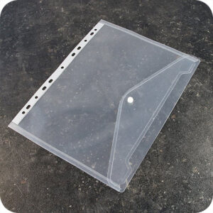 Dokumentmapp för A4 dokument i randig transparent PP med flik och knäpplås hålad för pärm.