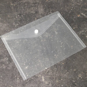 Dokumentmapp för A5 dokument i transparent PP med flik och kardborrelås.