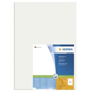 Märk det du vill på kontoret eller hemma med extra starka Premium-etiketter med hög vithetsgrad från Herma. De här allroundetiketterna från Herma är extra starka med permanent självhäftande lim. Etiketterna är tillverkade så att de ligger plant vid utskrift, vilket säkerställer att de inte fastnar i skrivaren vid utskrift av stora eller små volymer. Den skyddande kanten ger enkel matning utan att kanterna böjer sig och lämnar inga klisteravlagringar. De här etiketterna från Herma ger snabb, tillförlitlig vidhäftning även på svala, fuktiga ytor. – Permanenta etiketter – Kompatibla med laserskrivare, bläckstråleskrivare och kopiatorer – Hög vithet och jämn yta – Tjockare, extra starka etiketter som är enkla att fästa – Miljövänligare produkt – Högkvalitativt, klorfritt blekt papper – Använder klister utan lösningsmedel – Certifieringar: PEFC, TÜV SÜD – Kostnadsfri programvara: www.herma.com/software – Pappersformat: A3 – Mått: 297 x 420 mm – Färg: Vit – Antal: 100 etiketter, 1 x 100 ark