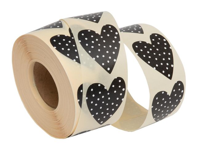 Prickiga hjärtan att dekorera paketen eller bukettomslaget med. Svarta, dekorativa självhäftande hjärtan på rulle. – Storlek: 35x42cm – Antal: 1000st/rulle