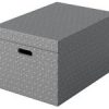 Praktiska lådor med integrerade bärhandtag. Modern och rymlig förvaringslåda i FSC-märkt kartong med avtagbart lock perfekt för förvaring hemma eller på kontoret. Set med tre lådor i samma storlek för att användas fristående eller förvaras i hyllor och garderober för att hålla saker som papper, böcker och leksaker organiserade och lätta att hitta. Varje låda har 2 integrerade bärhandtag så att den enkelt kan bäras från rum till rum när det behövs. Tillverkad av stark, 100% återvunnen och 100% återvinningsbar wellpapp som är FSC-certifierad. Geometrisk mönster i dubbla färger som ger stil till din förvaring. Levereras platt förpackad och är snabb och enkel att montera, lådsidorna viks omlott vilket gör lådorna extra stabila. – Mått: 355 x 305 x 510 mm – Färg: vit –