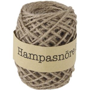 Vackert naturfärgat hampasnöre för presentinslagning eller annan dekoration. Naturfärgat hampasnöre för mångsidig användning. – Längd: 25m/rl