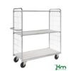 Robust och flexibel hyllvagn med ett brett användningsområde. Elförzinkad med laminatskivor och justerbart handtag. Hyllorna kan monteras på olika höjder efter eget önskemål. Levereras omonterad. – Belastning: 300kg – Storlek: 1590 x 650 x 1695mm (LxBxH) – Färg: Elförzinkad/vit – Vikt: 66kg – Bromsade hjul: Nej – Hjultyp: 2 fasta, 2 länkhjul 160mm
