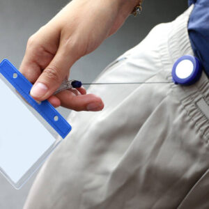 Jojo till korthållare tillverkad av plast, med bältesklämma , plastögla och tryckknapp (lämplig för ID-fickor med skåra eller eurohål).