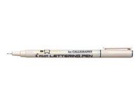 Pilots textningspenna använder snabbtorkande pigmentbläck och är idealisk för kalligrafi. Pilots textningspenna ger jämna och skarpa linjer med förfalskningssäkert pigmentbläck. Spetsen är inkapslad i metall för större exakthet, precision och kontroll. Det avancerade bläcket är snabbtorkande och vatten- och ljusbeständigt, vilket innebär att du kan utföra komplicerade och levande arbeten. Den här textningspennan är perfekt för kalligrafi eller kursiv skrift eftersom den ger skarpa, rena linjer. Den har en enkel pennkropp med räfflor nära spetsen för ett bekvämt grepp. Pennan är av engångstyp och levereras komplett med fickklämma och kork. – Vattenfast bläck – Spetsbredd: 2,0 mm – Linjebredd: 0,3?2,0 mm – Idealisk för kalligrafi eller kursiv skrift – Metallinkapslad spets – Snabbtorkande – Färg: Svart