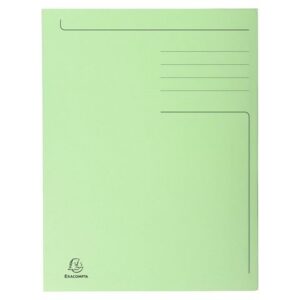 En grön kartongmapp. En 3-klaffs kartongmapp som stabilt och enkelt håller dina dokument och andra papper på plats.