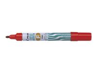Pilot Bullet Marker har en spets och kan användas på nästan vilken yta som helst. Pilot Bullet Marker är en märkpenna som är idealisk om du vill skriva med tydlig och framträdande färg. spetsen ger en linje på 1,0 mm som är lämplig för uppgifter som kräver exakt och kontrollerad skrift. Med sin stora bläckbehållare håller den här pennan länge och kan fyllas på så att du inte behöver kasta den. Dessutom innehåller den xylenfritt bläck som ger mindre lukt än vanligt bläck. Märkpennan kan användas på nästan alla ytor och har en kork som gör den praktisk att bära med sig. Den har en slimmad lättviktsdesign som gör den extremt bekväm och enkel att använda. – Permanent bläck – Med huv – Rund spets – Spetsbredd: 4 mm – Linjebredd: 1 mm – Textfärg: Röd