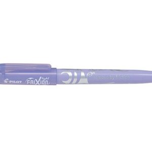 Raderbar överstrykningspenna. Fungerar på tryckt text och blir permanent efter två år. – Med huv – Radergummi på pennans topp – Snedskuren spets – Linjebredd: 3,3 mm – Textfärg: Ljuslila – Färg pennkropp: Ljuslila – Tillverkad av 50% återvunnet material