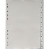 Vita registerblad av PP-plast med blått tryck. Numeriskt register i A4-format. Med internationell hålning – 11 hål som passar de flesta vanliga gaffel- och ringpärmar. – Smutsavvisande – perfekt för vardagsbruk – Tillverkat av återvunna material – Med standardhålning