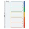 Numeriskt register i A4-format, vita blad med blå siffror 1-10. Vita registerblad av PP-plast med blått tryck. Med internationell hålning – 11 hål som passar de flesta vanliga gaffel- och ringpärmar. – Smutsavvisande – perfekt för vardagsbruk – Tillverkat av återvunna material – Med standardhålning