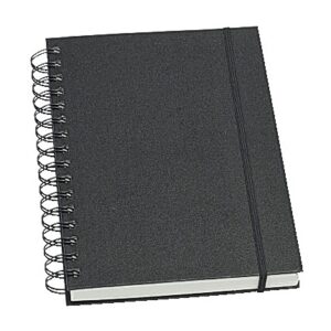 Skissblock Grieg. Spiralbunden med hårt omslag, och med gummibandsförsluting i svart som håller innehållet på plats. A5 stående, 150g syrafritt samt perforerat papper, 60 blad, olinjerat, svart.