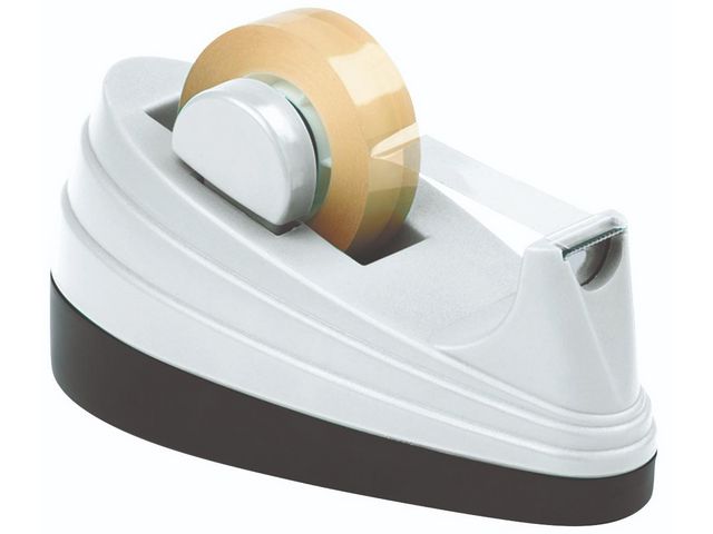 Tejphållare, Lyreco. Vit tejphållare med svart botten som passar för 19 mm breda tejprullar med upp till 33 m tejp. Tillverkad i svart plast. Mått: HxBxL 7 x 7 x 17 cm Levereras utan tejp. – En tejphållare i svart och vitt – – Passar för 19 mm bred tejp – – Rymmer 33 m långa rullar