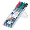 STAEDTLER Lumocolor® 318 permanent märkpenna innehåller ett bläck som inte avger starka lukter och kan användas på nästan vilken yta som helst. Med den här universalpennan går det att skriva på nästan alla ytor, till exempel glas, metall, plast, tyg och OH-film. STAEDTLER Lumocolor® 318 har en tunn spets som ger cirka 0,6 mm linjebredd och den passar utmärkt när du vill ha precision och noggrannhet. Den innehåller ett särskilt bläck som är smetfritt och vattenbeständigt så att du kan skriva permanent text i nästan alla förhållanden. Bläcket torkar inom några sekunder, vilket gör den här märkpennan perfekt för vänsterhänta. Bläcket är dessutom xylen- och toluenfritt, vilket innebär att bläcket luktar mindre. Märkpennan levereras komplett med kork och fickklämma så att den är lätt att alltid ha till hands. – Permanent bläck – Med huv – Linjebredd: Ca 0,6 mm – Textärg: Svart – Färg pennkropp: Svart